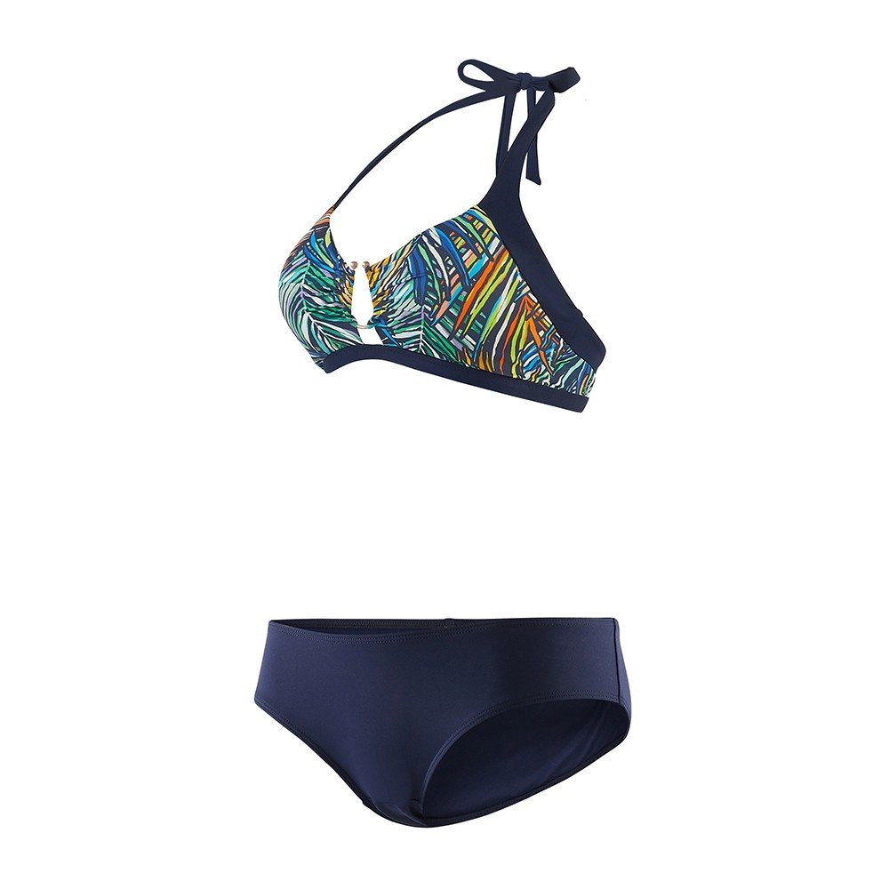 Une touche de séduction est apportée au bikini avec son bijou effet piercing à l’entre bonnet qui mettra en valeur votre décolleté. Le haut s’associe à un shorty taille basse qui vient se placer sous le ventre pour plus de liberté et de confort.
