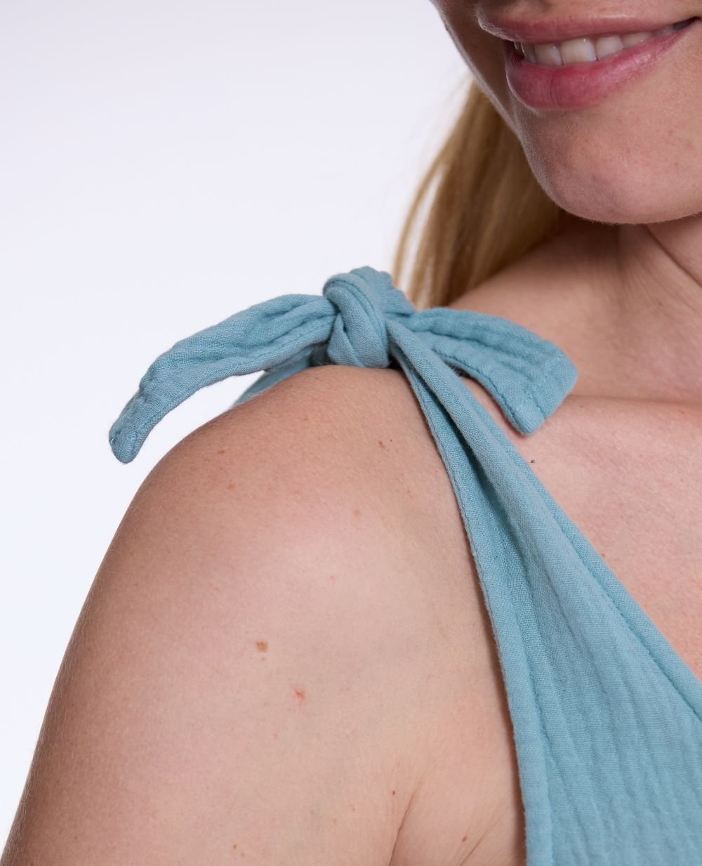En gaze de coton, la combinaison de grossesse et d’allaitement Canyon Océan vous accompagnera toute votre grossesse et bien plus encore. Elle sera votre alliée pendant l’allaitement grâce à son ouverture zip sous-poitrine. Composée de deux curseurs, sa fermeture éclair vous permet, en un seul geste, d’accéder facilement au sein avec lequel vous souhaitez allaiter.Sa matière, douce et respirante, en fait la tenue complète idéale pour les beaux jours. Son petit plus : sa coupe wide leg a été pensée pour vous permettre d’avoir une combinaison fluide qui ne colle pas à la peau.Des bretelles nouées au niveau des épaules et un ravissant décolleté dans le dos subliment Canyon.Certifiée OEKO-TEX STANDARD 100, sa matière en coton 100% biologique, (certifié GOTS), une fibre naturelle issue de l’agriculture biologique, est confectionnée à partir de matières premières espagnoles.
