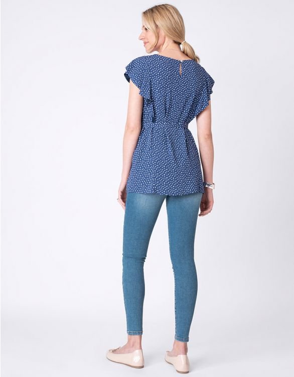 Viscose ultra douceAccès allaitementManches fémininesCeinture à nouerCe haut grossesse et allaitement à pois avec ses manches volantées, bleu, est parfait pour être chic et féminine avant, pendant et après la grossesse. Avec sa coupe élégante et sa matière ultra douce, ce joli haut sublime parfaitement vos nouvelles courbes tout au long de la grossesse. Sa ceinture à nouer marque votre taille Empire et souligne votre silhouette de future maman. Après que bébé soit né, les fermetures discrètes à l’avant permettent d’allaiter facilement. Les manches volantées et l’imprimé à pois complètent le look.