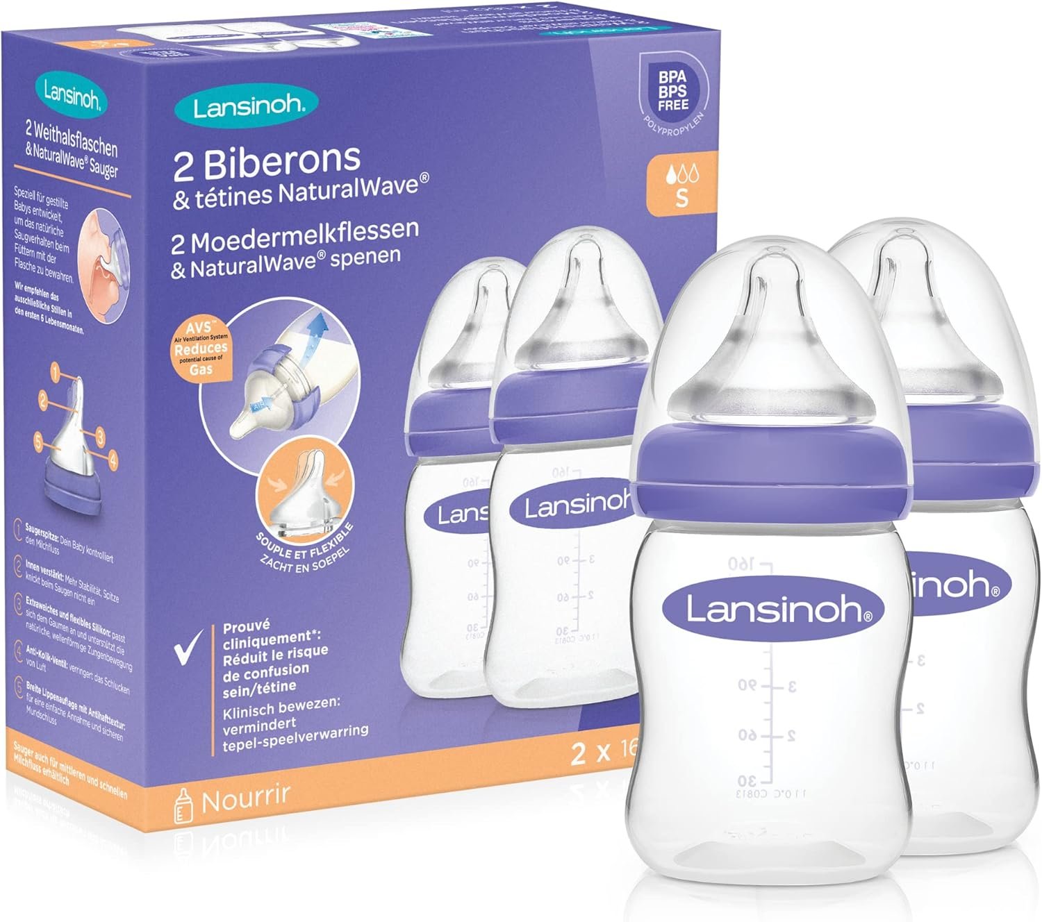 Les Biberons et Tétines NaturalWave® Lansinoh® sont conçus pour imiter la succion naturelle du sein, limitant ainsi le risque de confusion sein-tétine. Idéals pour passer facilement du sein au biberon et vice versa, ils permettent à bébé de reproduire le mouvement péristaltique de la langue. Compatibles avec l’allaitement, ils favorisent un développement oral naturel et sont parfaits pour les mamans qui tirent leur lait.Conçus pour Allaiter au Sein et au BiberonLes biberons et tétines NaturalWavesont issus de recherches approfondies et études cliniques*. La technologie NaturalWave permet de limiter le risque de confusion sein-tétine, un phénomène où bébé allaité préfère la tétine au sein en raison de la facilité de succion. Grâce à la tétine NaturalWave, votre bébé peut reproduire le mouvement péristaltique naturel de sa langue, essentiel pour une succion correcte et sans confusion.Attention, le biberon ne saurait remplacer l’allaitement au sein.Le tire-allaitement peut être une solution pour démarrer et poursuivre son allaitement dans plusieurs situations comme une naissance prématurée, des problèmes de succion de bébé ou encore la reprise du travail de la mère.