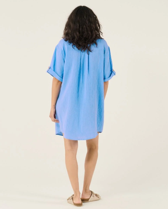 Parfaite pendant votre grossesse et l’allaitement, la robe chemise Bertille  est la petite robe idéale pour les beaux jours. A porter fermée pour un moment shopping, pour une belle balade ou encore un dîner au restaurant ; ou le petit plus : ouverte, en sortie de plage par-dessus votre maillot de bain. Bertille est votre meilleur allié pour l’été. Sa coupe oversize lui permet de vous suivre tout au long de votre grossesse et même longtemps après. Composée en gaze de coton elle a été conçue pour vous apporter un effet très doux et léger. Les boutons de la chemise Bertille sont réalisés à partir de bois d’olivier français et vous permettent un accès facile pour allaiter bébé. Sa petite poche au niveau de la poitrine parfait sa coupe oversize.Certifiée OEKO-TEX STANDARD 100, Bertille est fabriquée à 100% en fil de coton biologique certifié GOTS, une fibre naturelle provenant de l’agriculture biologique, sa matière provient d’Espagne.