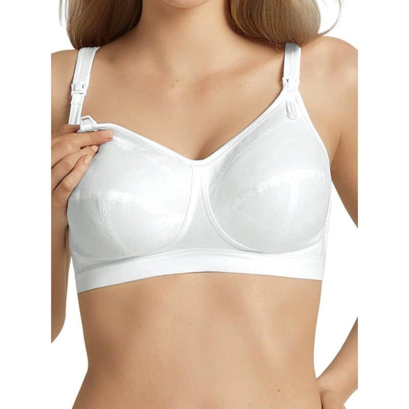 Miss cotton soutien-gorge d’allaitement spécial grand bonnet en coton,Anita Maternity particulièrement adapté aux poitrines lourdes !Bonnets :En trois parties pour un joli décolleté et un maintien parfait.Renfort de poitrine pour faciliter l’allaitement, en coton piqué opaqueLes coussinets d’allaitement ne se voient pas grâce à la structure de la matièreL’ouverture et la fermeture des bonnets d’une seule main, tout en gardant le bébé bien en sécurité dans l’autre bras, la maman se prépare facilement à l’allaitement ou au changement de sein.Bretelles :Les larges bretelles bien rembourrées soulagent le dos et la nuque.Une pince de poitrine garanti maintien et confort.Large basque sous poitrine en microfibre élastiqueDoublées avec un coussinet très doux au niveau de l’épaule,Soulagent le dosDos :En filet coton (Coloris blanc)Élastique et réglable en 3 positionsMatières :Fort pourcentage de coton90 % CO,10 % PAEntretien :Lavage avec programme délicat à 40°Blanchiment à proscrireSéchage en machine à proscrireRepassage à proscrire ou restriction forteNettoyage à sec à proscrire