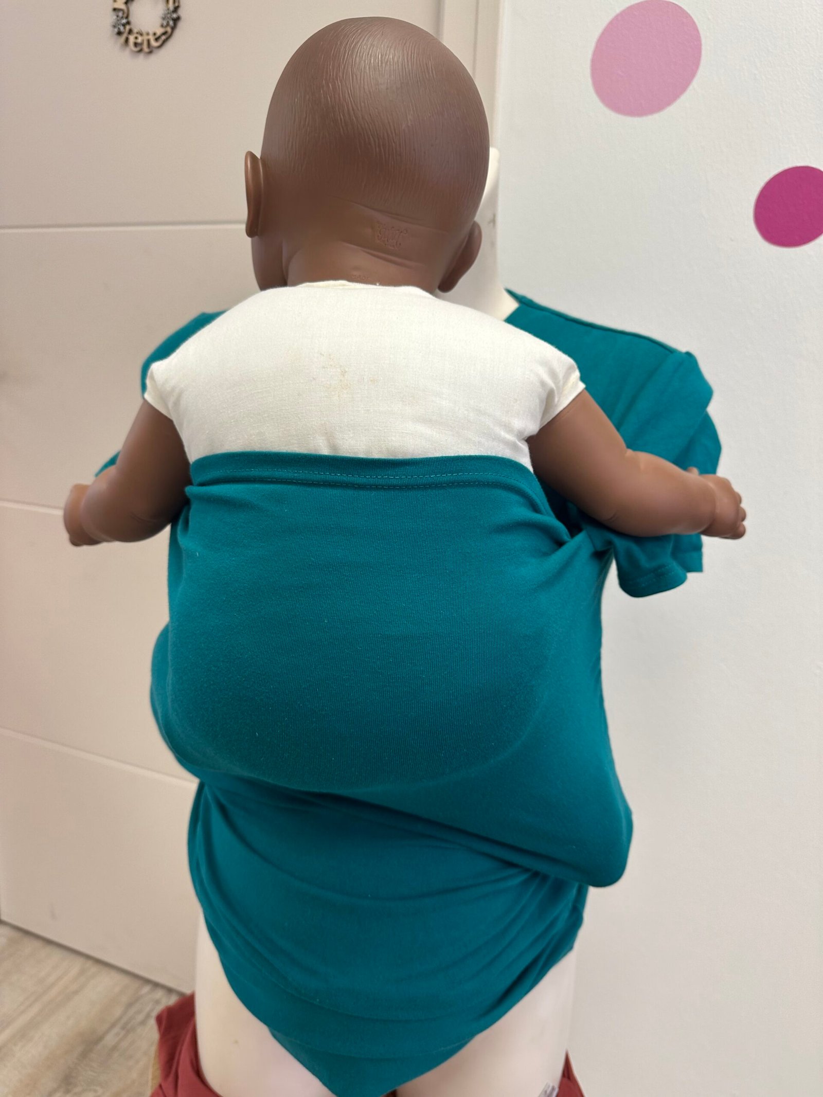 LE tshirt DE PEAU À PEAU est un vêtement de maintien pour maman et bébé, c’est aussi un corsage cache-cœur conçu pour :Maintenir votre bébé en peau à peau en toute sécurité contre vous,Simplifier l’allaitement grâce à la position fœtale de votre nourrisson,Permettre d’avoir votre bébé contre vous de manière physiologique,Affiner votre silhouette,Vous proposer d’avoir les mains libres tout étant debout avec votre bébé,Il est conçu dans un tissu alliant le coton et le spandexFabrication de bonne facture à la main au Canada,Il possède une certification Oeko-Tex qui garantit l’absence totale de métaux lourds, ce qui répond aux exigences des vêtements pour nourrisson.